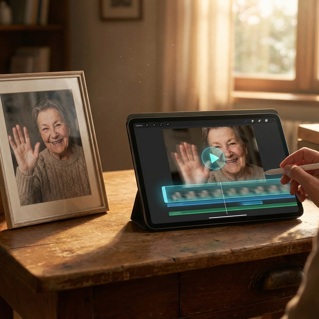 Bring a static photo to life with a friendly wave. Perfect for creating a welcoming presence in your memorial.