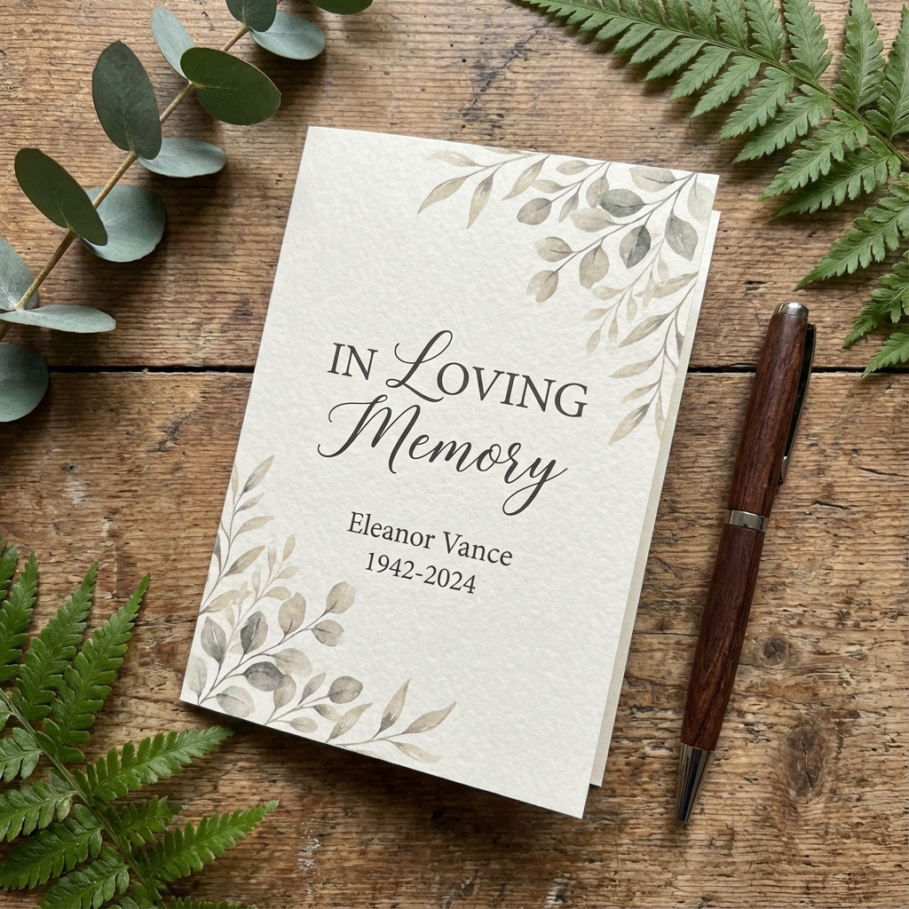 Design compassionate and elegant memorial cards for funeral services and keepsakes.